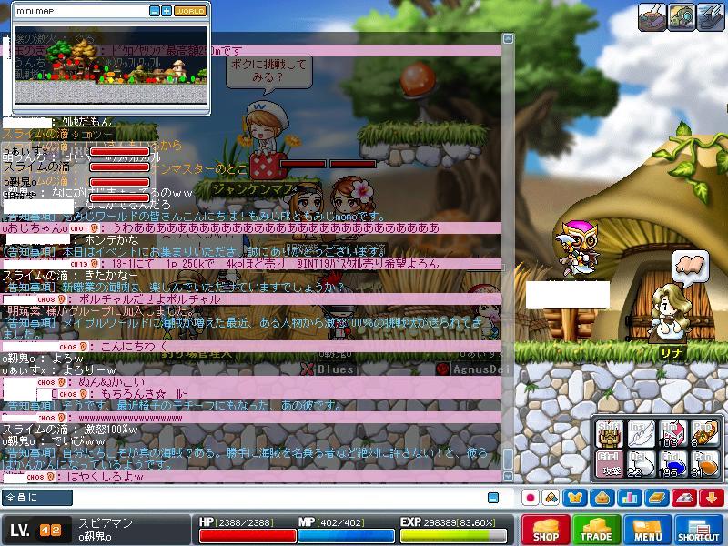 只今のメイプル情報・・・ o靱鬼o 44LV スピアマン でじtal 17LV? アーチャー あー臨時メンテナンスとかないわ^^ てことでノシ @14歳になりました